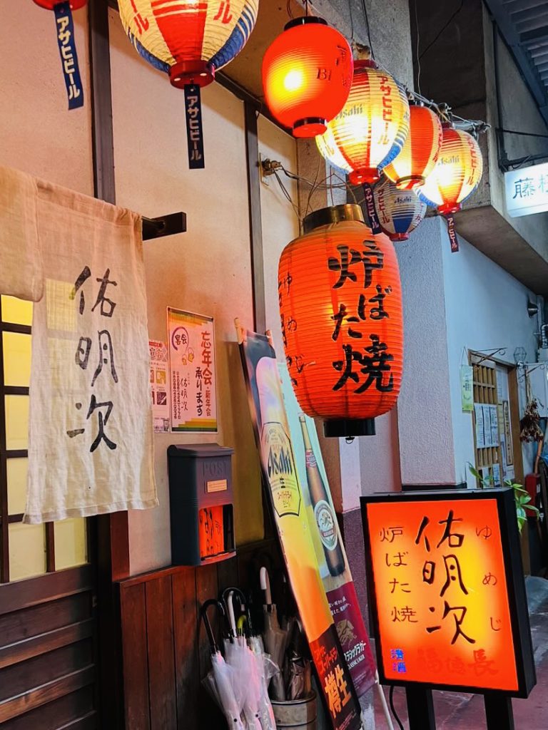 倉敷デパート内には、鉄板焼、炉端焼、バー、焼肉、アジア料理、うどん等々、味もさることながら個性的なお店が揃っています。また雨風を凌げる屋根もあるので、ハシゴ酒する人にはもってこいの環境です。